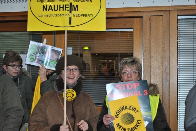 Im Vorfeld der Landesmitgliederversammlung hatten die BIs gegen Fluglärm und für eine lebenswerte Region Rhein-Main zu einer Großdemonstration aufgerufen. Dieser Einladung waren ca. 350 Menschen, darunter auch Nauheimer, gefolgt.