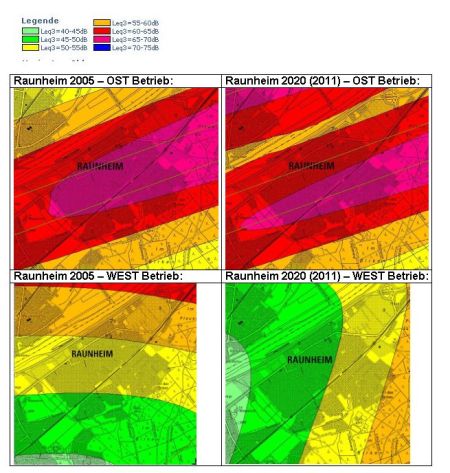 Dass es Stand heute in Raunheim lauter ist als in Nauheim ist unstrittig. Dieses Bild wird sich in den kommenden Jahren wandeln und wir versuchen dies darzustellen. Das regionale Dialogforum hat zum Zweck der Überwachung der Lärmentwicklung Lärmkarten erstellen lassen, die im Internet für jeden frei zugänglich sind.